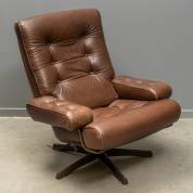 Bruin lederen draaifauteuil, uitvoering G-Möbel, Nässjö, Zweden, jaren '60/'70 -lichte gebruikssporen-, 90 x 82 x 80 cm