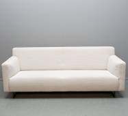Wit gestoffeerde driezits bank, uitvoering Rolf Benz, modern -lichte gebruikssporen, enkele vlekken-, 80 x 210 x 88 cm