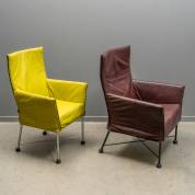 Twee lederen fauteuils, de één model Charly, de ander model Chaplin, beide ontwerp Gerard van den Berg, uitvoering Montis -gebruikssporen-, 97 x 70 x 60 cm