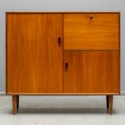 Teakhouten kast met klep en twee deurtjes, uitvoering Formule meubelen, midden 20e eeuw, 111 x 122 x 30 cm