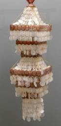 Kroonluchter met capiz pegels en roodgekleurde details, 20e eeuw -zonder elektra, enkele beschadigde en missende pegels-, 130 x 34 x 34 cm