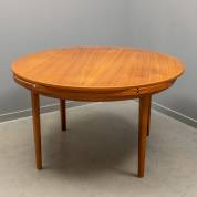 Ronde teakhouten tafel, model 'Flip Flap Lotus', verstelbaar, uitvoering Dyrlun, Denemarken, jaren '70 -lichte gebruikssporen-, 72 x Ø130 cm, Ø180 cm