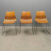 Drie 'Scandia Junior Chairs', ontwerp Hans Brattrud, uitvoering Hove Möbler, Noorwegen, jaren '60/'70 -gebruikssporen, bij één stoel mist een flintertje fineer-, 78 x 50 x 50 cm