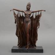 Gepatineerd bronzen beeld: Semiramis, reproductie naar Chiparus, eind 20e eeuw, op marmeren basement, 53 x 37 x 15 cm