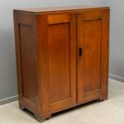 Lage teakhouten tweedeurs kast met drie schappen, 20e eeuw -lichte gebruikssporen-, 123 x 106 x 49 cm
