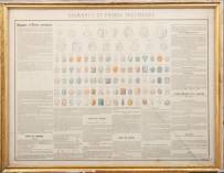 Franstalige informatieve prent: 'Diamants et pierres précieuses', uit de Encyclopedie Bouasse-Lebel, tweede helft 19e eeuw -glas in lijst gebroken-, 52 x 68 cm
