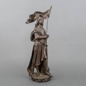 Bronskleurig zamak beeld: Jeanne d'Arc -gaatje geboord in schouder, krasjes op arm-, 61 x 21 x 20 cm