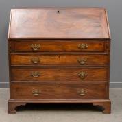 Mahonie secretaire, met achter de klep een deurtje met bloemmarqueterie, lades en schapjes, Engeland, circa 1800 -restauraties, gebruikssporen-, 108 x 103 x 53 cm