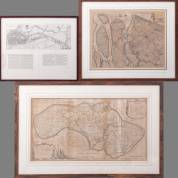 Drie gravures: 'Kaarte van Schouwen en Duiveland', I. Tirion, circa 1753; 'Delflandia, Schielandia [..] etc.', W. Blaeu, circa 1631; 'Schiedamum', J. Blaeu, circa 1649, 33 x 63 cm