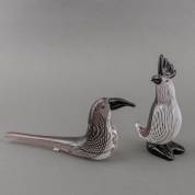 Twee tropische vogels van kleurloos, zwart en wit glas, modern, 19 x 10 x 6 cm