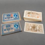 Grote hoeveelheid bankbiljetten van 1000 Duitse Mark, 1910, daarbij enkele bankbiljetten van 1000 Oostenrijkse Kronen, 1902 -gebruikssporen-