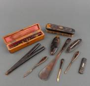 Diverse gebruiksvoorwerpen, voornamelijk met schildpad monturen, 19e en begin 20e eeuw -defecten-