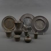 Divers tin, waaronder een kan en drie borden, 22 x 16 x 12 cm