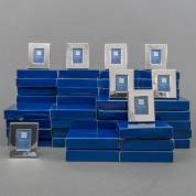 Grote verzameling verzilverde fotolijstjes, alle in originele verpakking, nieuw, 7 x 6 x 1,5 cm