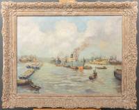 Paulus Leendert van Dam (1892-1982), havengezicht, olieverf op doek, r.o. gesigneerd -kleine vlekjes op doek-, 60 x 79 cm