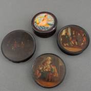 Drie Stobwasser-stijl dekseldoosjes en een doosje met zeenimf -gebruikssporen-, Ø 10 cm
