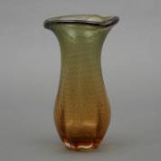 Bruine, uitlopend naar groene kristallen vaas met luchtbelletjes, Murano, Italië, 27 x Ø 15 cm