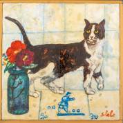 Ferry Slebe (1907-1994), kat op de tegels, olieverf op board, r.o. gesigneerd, aangekocht bij Pulchri Studio, Den Haag, 1982, kopie aankoopnota bijgevoegd, 18 x 18 cm