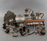 Grote verzameling tinnen voorwerpen, waaronder bekers, lepels, kannen en strooiers, 19e/20e eeuw -gebruikssporen-, 20 x Ø 22 cm