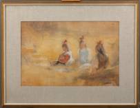 Leendert van der Vlist (1894-1962), drie meisjes op het duin, aquarel op papier, r.o. gesigneerd -waterschade-, 42 x 64 cm