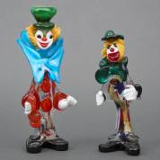 Twee gekleurde glazen beeldjes: clowns, Pitau, Murano, circa 2000 -één strik defect-, 26 x 10 x 7 cm
