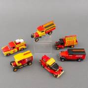 Zes Coca-Cola miniatuurauto's, uitvoering Matchbox Yesteryear, waaronder: 1932 Ford AA truck, 1930 Ford Model A Pickup en 1957 Chevrolet Pick-Up Truck