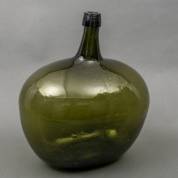 Handgevormde ovale groenglazen voorraadfles, circa 1800, 45 x 39 x 26 cm