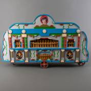 Polychroom beschilderd houten speelgoedorgel, 55 x 90 x 16 cm