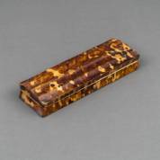 Schildpadbelijmd brillendoosje, het deksel golvend vormgegeven, 19e eeuw -hoekjes fineer defect-, 2,5 x 14 x 4,5 cm