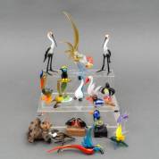 18 glazen beeldjes van vogels, 20e eeuw -één gelijmd, kleine defecten-, 21 cm