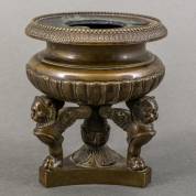 Bronzen inktpot, gedragen door drie griffioenen, eerste helft 19e eeuw -geen dekseltje-, 10 Ø9 cm