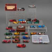 Verzameling miniatuurauto's, uitvoering Matchbox Yesteryear, waaronder: 1932 Bugatti Type 51, Mercedes-Benz 540 K 1937, en 1935 E.R.A, daarbij een doos met onderdelen