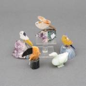 Vijf vogels gemaakt van onder andere natuursteen, 20e eeuw -kleine defecten-, 8 cm