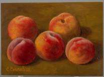 Hollandse School: stilleven met perziken, olieverf op paneel, l.o. gesigneerd C. Cornelisz., 21e eeuw, 13 x 18 cm