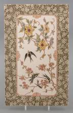 Grote keramische tegel met polychroom transferdecor: vogeltjes tussen bloemen, 20e eeuw, 44 x 28 cm