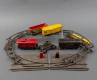 Blikken gelithografeerde tank en treinstellen, inclusief treinspoor en wissels -gebruikssporen-