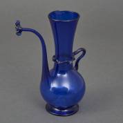 Perzisch blauw glazen schenkkannetje met langwerpige smalle tuit, 18e/19e eeuw -uiteinde tuit kleine chipjes-, 20 x 17 x 9 cm