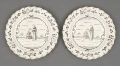 Paar Engelse creamware borden met geschulpte rand, gedecoreerd met Bijbelse voorstelling: David wordt tot koning gezalfd, 18e eeuw, 2,5 x Ø 25 cm