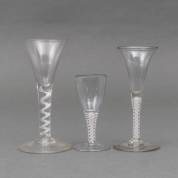 Drie diverse slingerglazen, circa derde kwart 18e eeuw -kleinste en grootste met enkele kleine chipjes van voet-, 17,75 cm