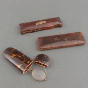 Drie schildpad brillenkokers, waaronder één met bril, 19e eeuw -gebruikssporen-, 15,5 x 4,5 x 2 cm