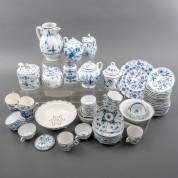 Verzameling diverse Duits porseleinen serviesdelen, alle met blauw-wit decor, diverse decors en uitvoeringen, 19e/20e eeuw -defecten-