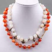 Collier van gefacetteerde carneool kralen aan goudkleurig slot, daarbij: collier van gefacetteerde agaat kralen met zilverkleurige metalen sluiting en kralen, 50 cm
