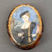 Schildpad doosje met miniatuurportret, 19e eeuw -dekselrand gebroken, portret en glasplaatje los-, 10 x 8 x 2 cm