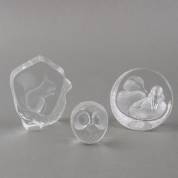 Drie glassculpturen met dierenvoorstelling, ontwerp Mats Jonasson, alle op onderzijde gesigneerd, 10 x 10 x 4 cm