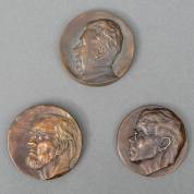 Pieter Moerenhout (1930-2018), drie bronzen penningen, alle met aan de voorzijde een reliëfportret: dirigent Anton Kersjes, cardioloog Dr. Norbert M. van Hemel, en vioolbouwer Wim Bouman, eind 20e eeuw, Ø8 cm
