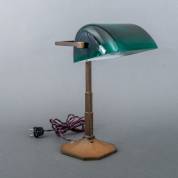 Notarislamp met groene glazen kap en bronzen voet, art deco, circa 1930 -bedrading versleten-, 38 x 24 x 20 cm