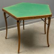 Beuken pentagonaal opklapbaar speeltafeltje met groen vilten blad, 71 x 95 x 100 cm
