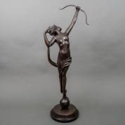 Gepatineerd bronzen beeld: boogschutter, reproductie naar ontwerp van Pierre Le Faguays, eind 20e eeuw, op marmeren basement, 83 Ø 21 cm