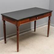 Mahoniegefineerd schrijftafeltje met zwart natuurstenen blad en lade in het front, 20e eeuw -lichte gebruikssporen-, 77 x 120 x 60 cm