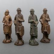 Serie van vier bronzen beelden: ridders, 28 x 9 x 7 cm